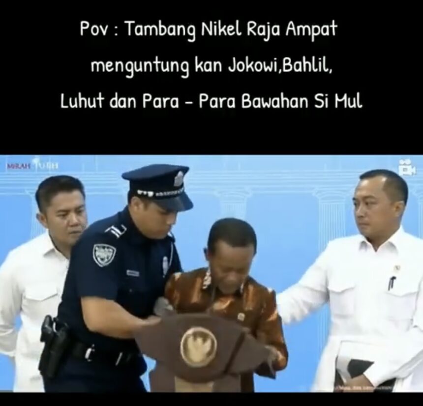 Salah satunya di platform X yang diposting oleh akun @MasBRO_back. Video berdurasi 21 detik tersebut menggambarkan Menyeri ESDM Bahlil Lahadalia ditangkap polisi saat memberikan keterangan pers terkait pertambangan nikel di Raja Ampat.