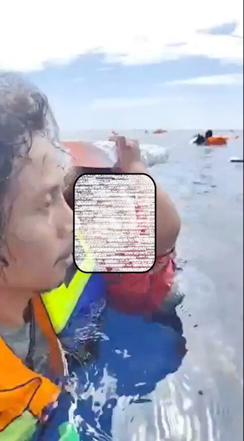 Dalam siaran langsung yang dibagikan akun Abdurahman Agu, banyak penumpang mengapung di sekitar kapal yang terbakar di perairan tersebut.